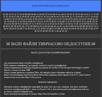 The title of the ransom note is “Ваші файли тимчасово зашифрувати! Не хвилюйтесь!”, which translates to “Your files are temporarily encrypted! Do not worry!”.