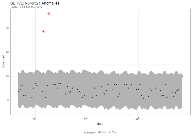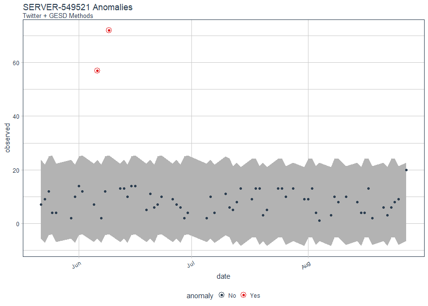 | Figure 4: SERVER-549521 logon anomalies with Twitter & GESD methods |